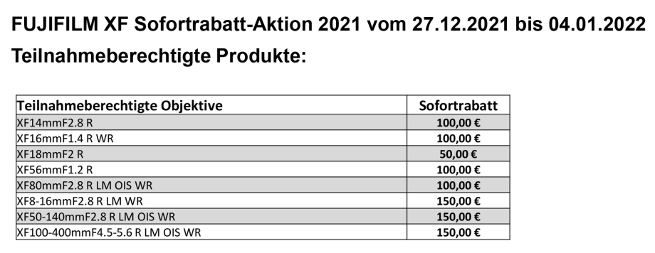 SOFORTRABATT XF-OBJEKTIVE