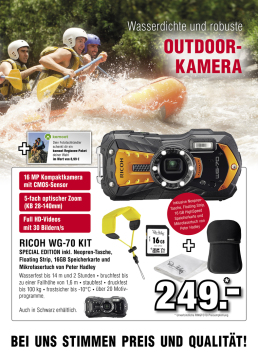 Ricoh WG-70 Special Edition orange inkl. Neoprencase/Strap+PH 16GB SD Karte/Tuch
